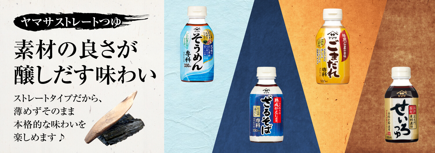 ヤマサは業界に先駆けて、 それまで缶入りだったものから瓶入りストレートつゆを発売。 1979年には「ヤマサひやむぎ専科」、 そして1980年に「ヤマサそうめん専科」を発売開始しました。 ...