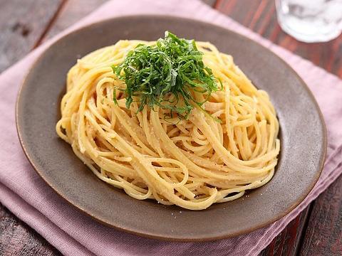 パスタにソースを和えただけのシンプルパスタは、深旨な「ヤマサごまだれ専科」にピリ辛な辛子明太子がベストマッチ!濃厚な味わいで、お腹も大満足。