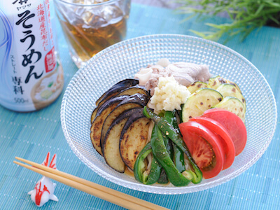 ■焼き夏野菜とおろししょうがの冷しゃぶそうめん