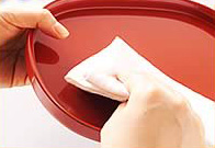 漆の器にほかの磁器や陶器を乗せる時は傷がつかないように、懐紙やペーパーナプキンなどをしきこんでから重ねます。傷を防ぐだけでなく、上品なコーディネートを演出できます。