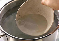 陶器はお米ひとつかみかとぎ汁で煮沸すると土の目を埋めることになり、汚れがしみ込みにくくなります。