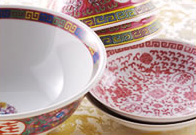 中国のお皿には色や柄(模様)に季節やおめでたい意味が込められていることが多く、不老長寿を祝う言葉や福寿に関する絵文字などが描かれて表現されています。
