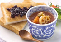 そば猪口は200cc前後のものが多いので、朝食のスープカップとして使うのにちょうど良い大きさです。小さめなので皿にのせてワンプレートにしても良いですし、カフェオレなどの温かい飲み物を注いでもいいですね。