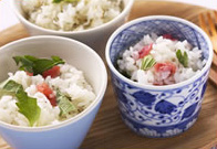 飲んだり、食べたりした後は小腹がすいてちょっとだけご飯が食べたくなりますよね。雑魚や梅干を混ぜただけの簡単ご飯もそば猪口に収まるときちんと手をかけたように見えてきます。一人ひとりにちょうど良い小丼ぶりになりました。
