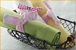 出番がないナプキンだってひとつずつ止めておけば、いつでもさっと 出せますね。かごに収納したらこんなに可愛くなります。
