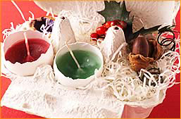出来上がったキャンドルは、紙製の卵のケースに入れてみました。