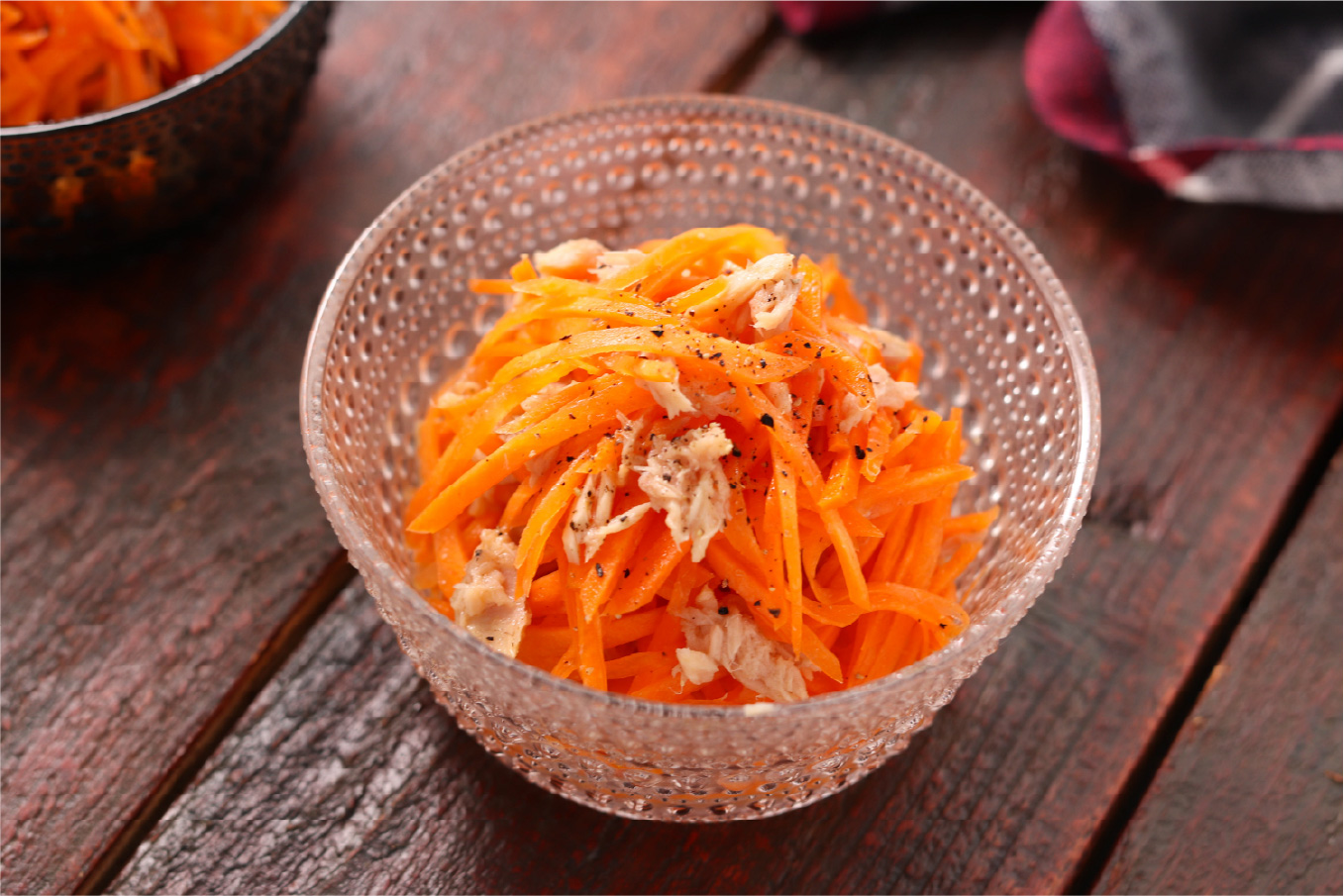 まず第一印象の「昆布の旨味」と「やわらかな酸味」を活かして作ったのが「にんじんとツナのラペ風」。ラペは女性に人気のメニューですが、お子さんや男性には酸味がきついとちょっと食べづらいという声も。「おまかせ酢」を使うことで、昆布の旨味が効いたやさしい酸味で、どなたにでも食べやすい味わいに仕上げました。切って和えるだけの簡単調理ですが、「おまかせ酢」の味の特徴がシンプルに伝わる1品です。