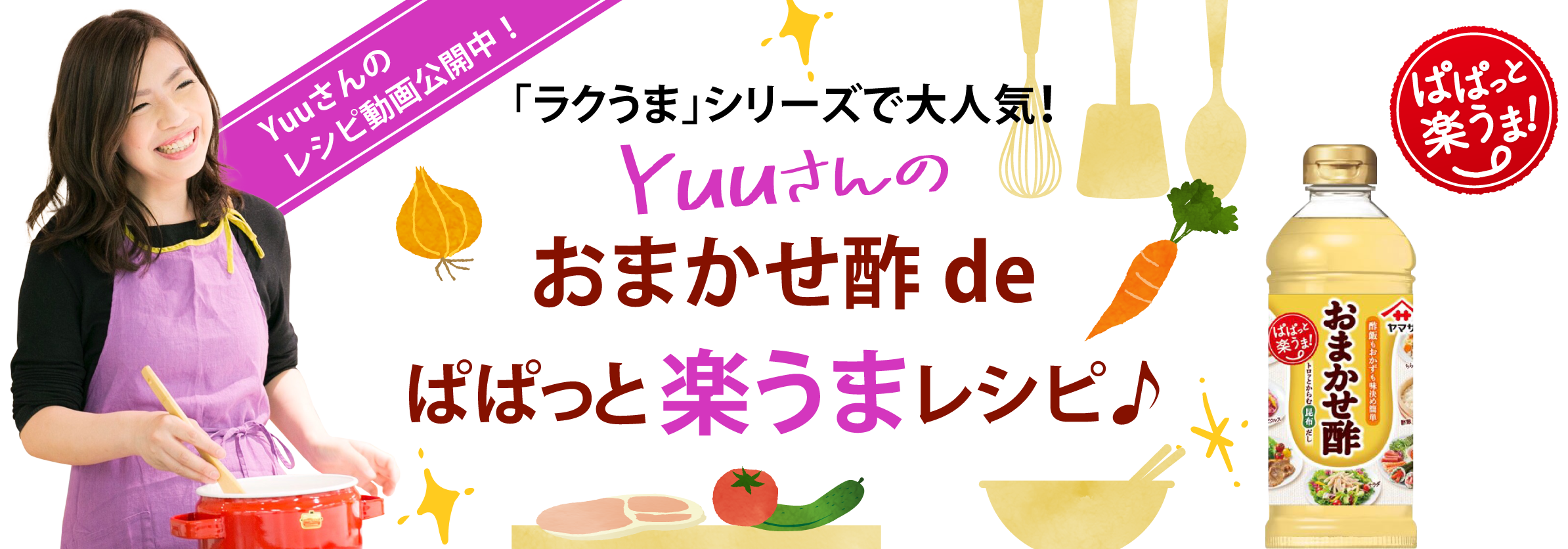ラクでおいしい料理の楽しさを伝える「ラクうまレシピ」が大人気の料理研究家/料理ブロガーのYuuさん。「簡単・時短」をテーマにしたYuuさんのブログは月間300万アクセス、インスタグラムは84万フォロワー超、また分かりやすく丁寧と評判のレシピ本は累計30万部を突破し、料理初心者さんをはじめ多くのファンから熱く支持されています。今回はYuuさんに「ヤマサ おまかせ酢」のレシピ開発秘話と使いこなし術、そして料理研究家としての想いをうかがいました。